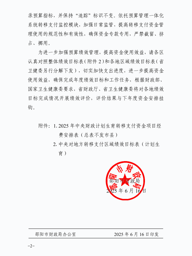 附件:1、2025年中央财政计划生育转移支付资金项目经费安排表(总表不发市县)