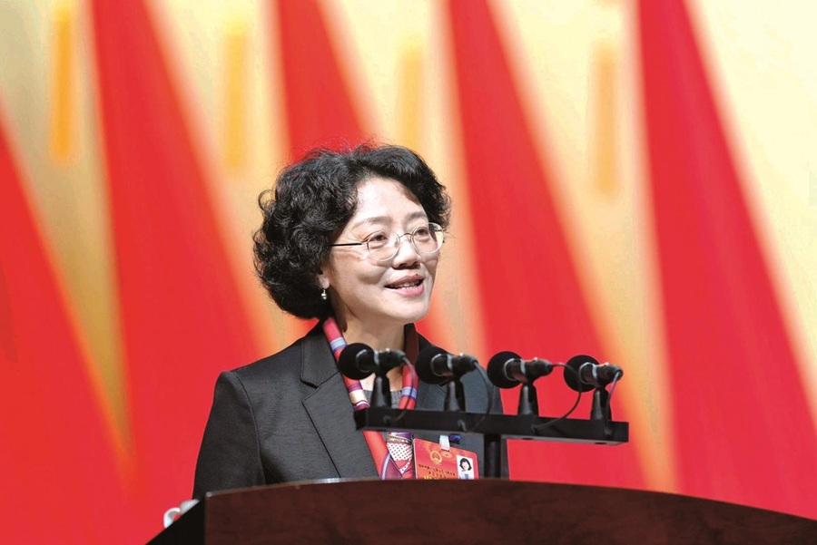 市长程蓓作政府工作报告。 邵阳日报记者 申兴刚 摄