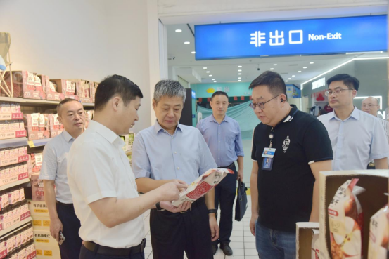 在友阿商场沃尔玛超市,严华仔细查看产品产地、生产日期等信息,随机拿起货架上的商品,逐一核对标签标识是否完整规范,并向超市负责人详细询问进货查验流程、临期商品处置办法及冷链食品溯源管理情况。他叮嘱道,超市作为群众日常采购的重要场所,要把好“进货关”“储存关”“销售关”,建立健全商品追溯体系,切实保障消费者权益。