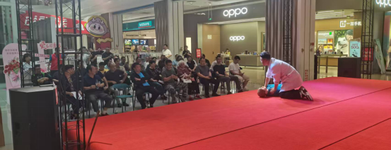内场活动分为急救技能培训与防灾知识宣讲两大板块。邵阳市中心医院主治医师、第一目击者导师褚小刚通过人体模型演示,详细讲解“心肺复苏”操作要点及“海姆立克急救法”适用场景,指导市民掌握“黄金四分钟”急救技巧。随后,市国动办工作人员结合邵阳地域特点,重点解析暴雨洪涝、高温干旱、火灾、滑坡等常见灾害的预防措施与应急处置方法,讲解预防措施与应急处置流程,并通过互动问答巩固市民学习成效。